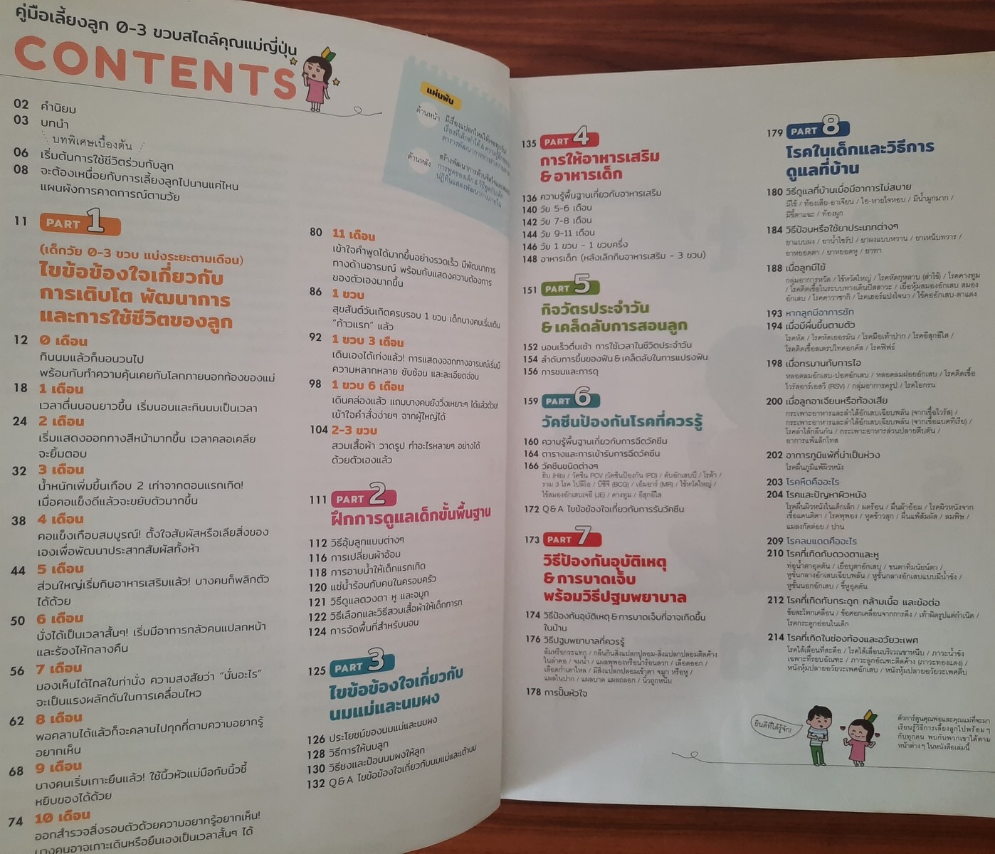 อัดแน่นไปด้วยข้อมูลเกี่ยวกับการเติบโต พัฒนาการ และการใช้ชีวิตของลูกน้อย ตั้งแต่วัย 0-3 ขวบ อาทิ สาเหตุที่ลูกร้องไห้ ทำไมไม่ยอมนอน นมและอาหารเสริม การอาบน้ำ ขับถ่าย วัคซีน โรคในเด็ก และอีกมากมาย