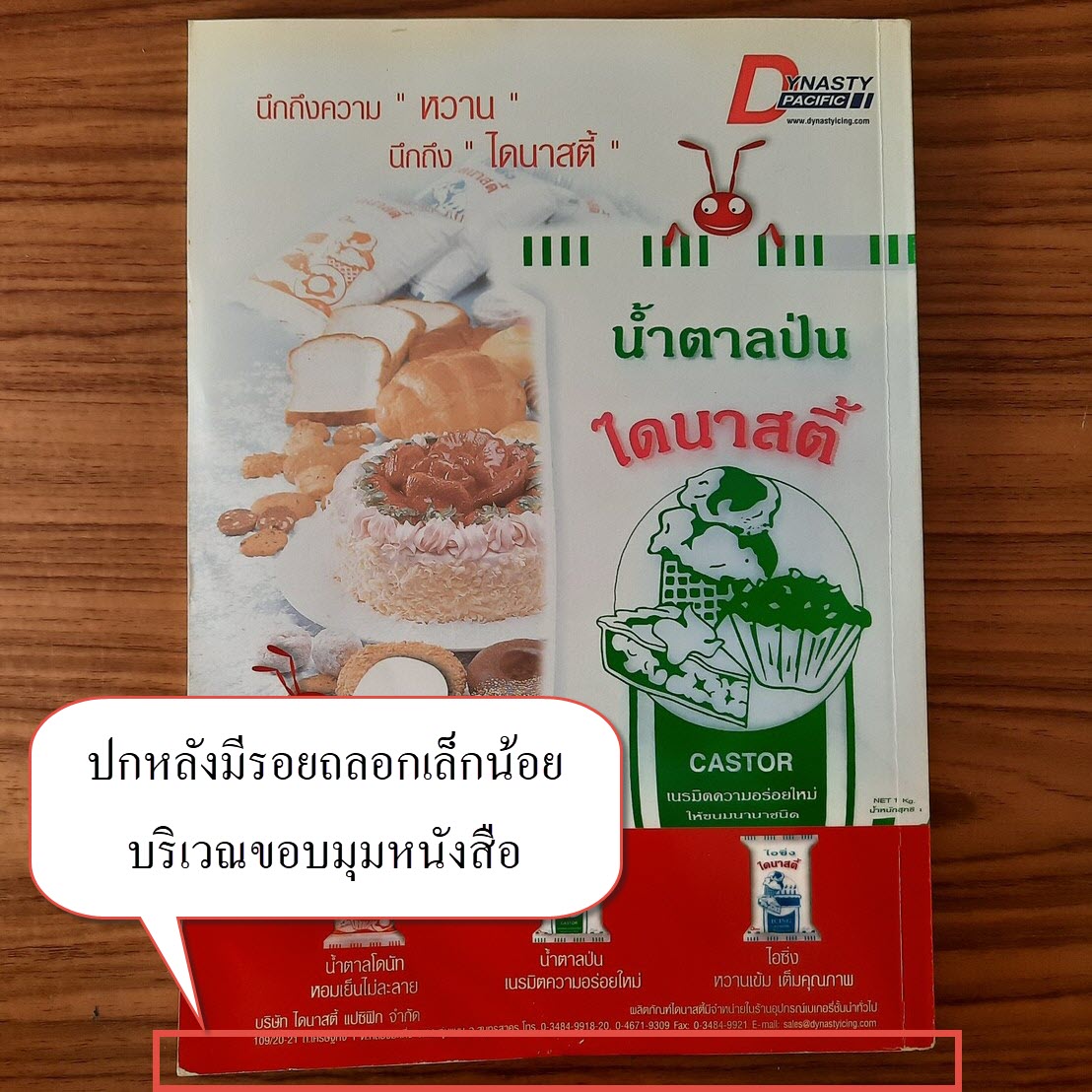 (2) ปกหลังมีรอยถลอกเล็กน้อยบริเวณขอบมุมหนังสือ รายละเอียดตามภาพ