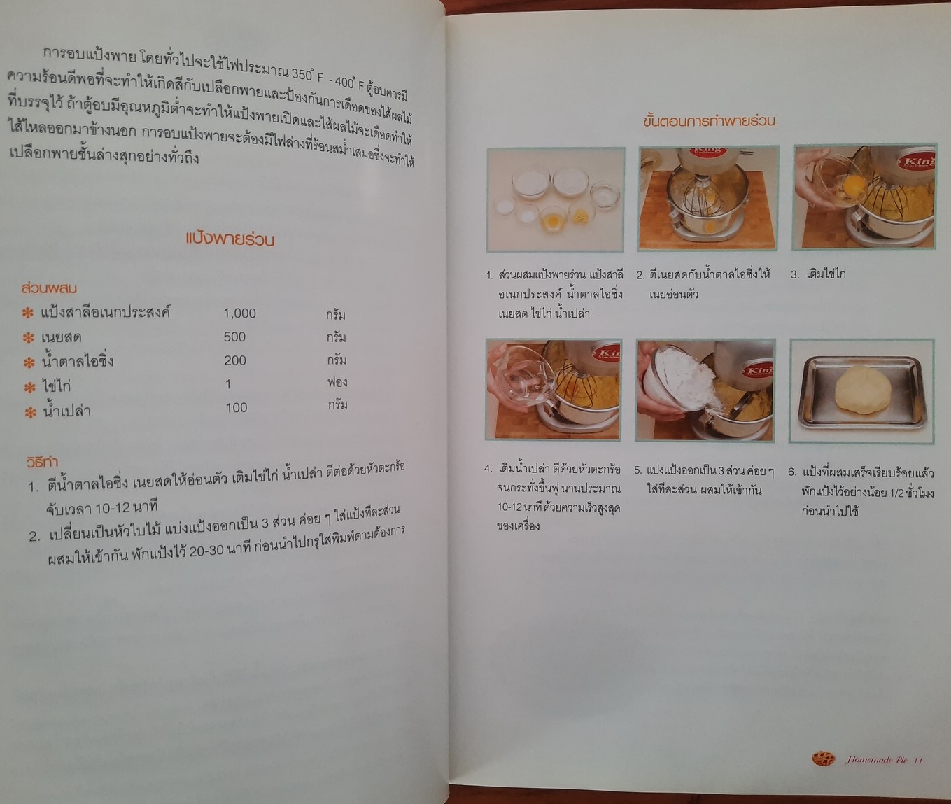 คู่มือการทำพายร่วนและพายชั้นเล่มนี้จึงได้สอดแทรกเทคนิคในการทำพาย พร้อมทั้งไส้ขนมแบบต่างๆ มากมาย ให้คุณได้เลือกทดลองทำ แต่อย่าลืมว่าการทำพายถ้าต้องการให้ขนมออกมามีรูปร่างหน้าตาสวยงาม จะต้องฝึกทำหลายๆ ครั้ง