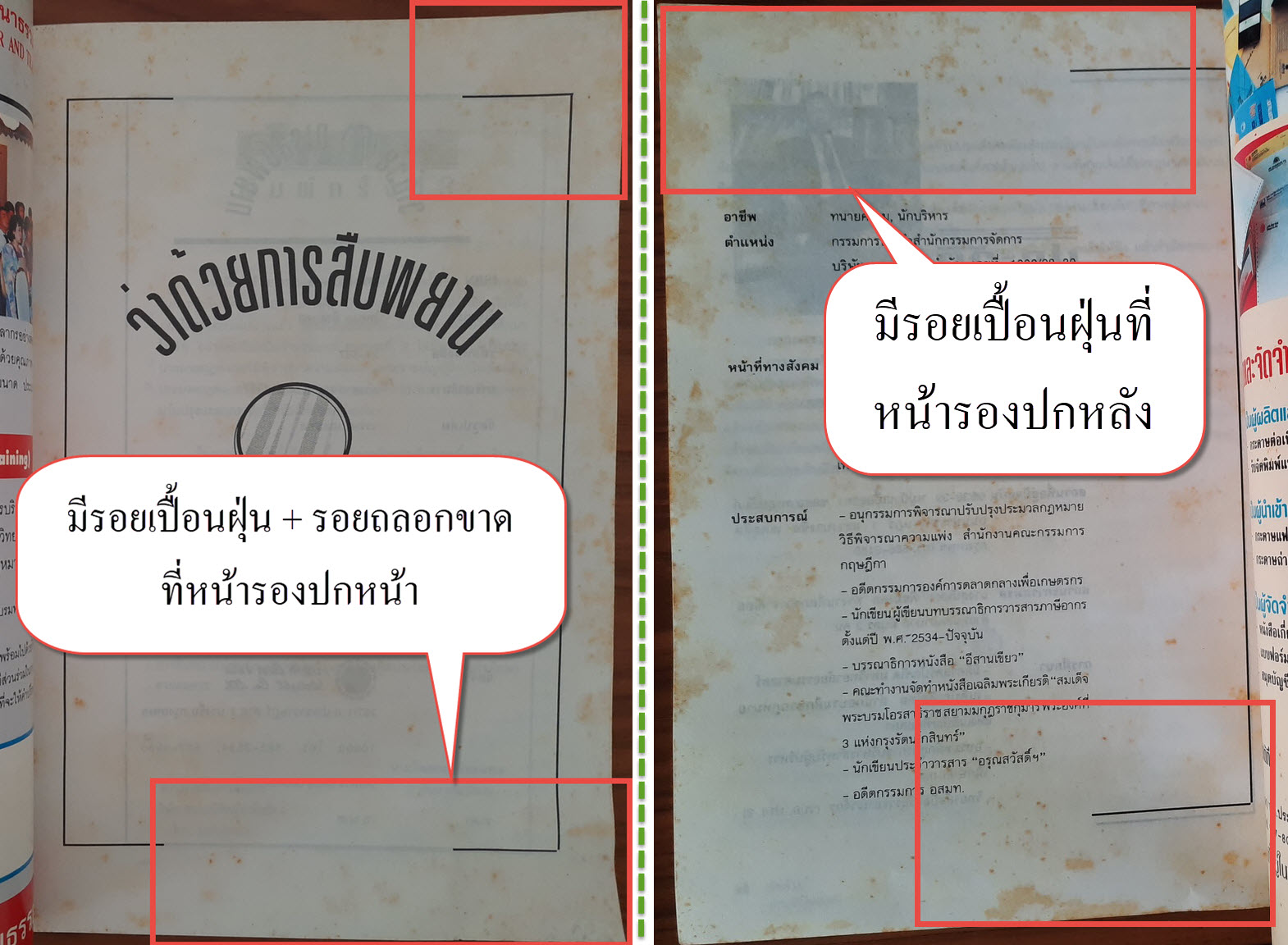 (2) ปกหน้า/ปกหลัง มีรอยถลอก + รอยสก๊อตเทป + รอยเปื้อนฝุ่น รายละเอียดตามภาพ