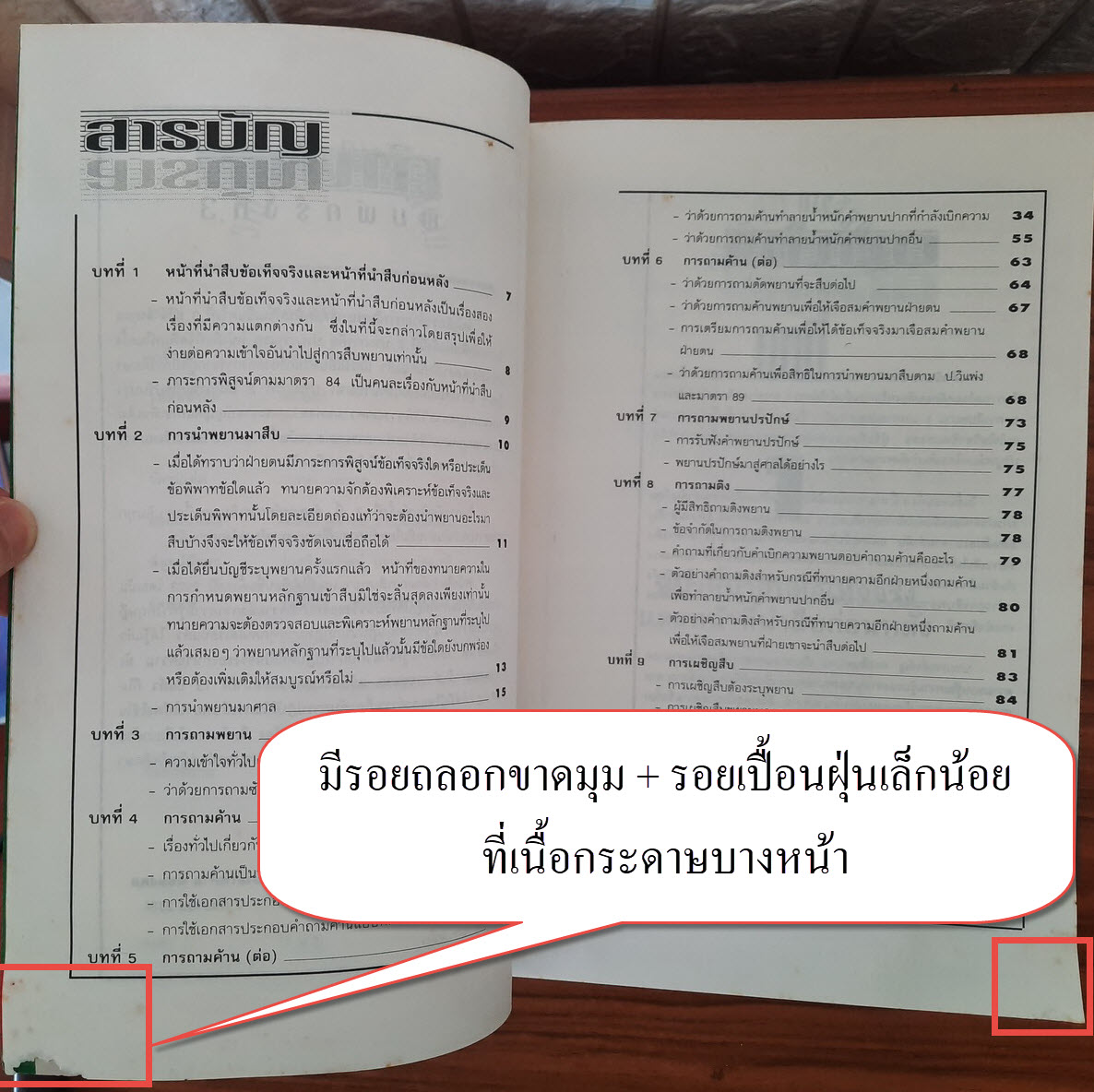 (3) กระดาษมีรอยถลอกขาดที่มุมล่างเล็กน้อย ที่หน้ารองปกหน้า และเนื้อกระดาษบางหน้า (ไม่กระทบเนื้อหาหนังสือ) รายละเอียดตามภาพ
