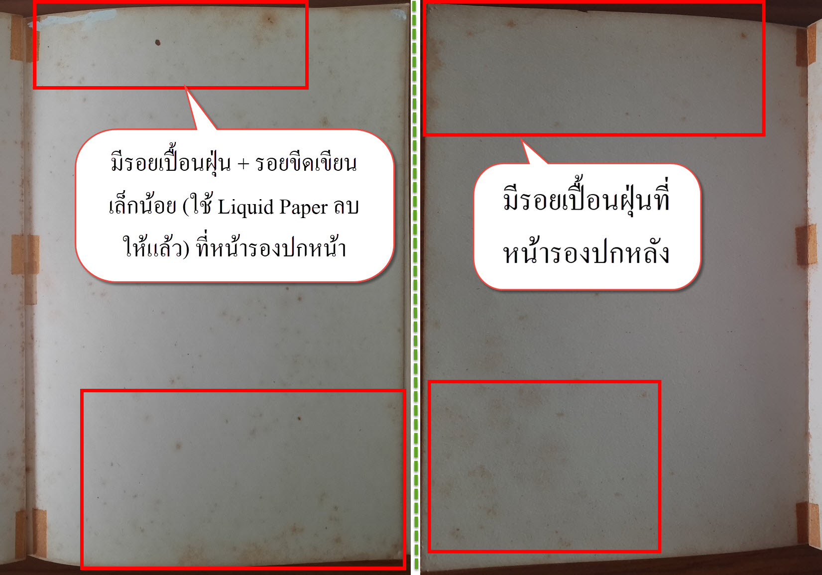 (2) ปกหน้า/ปกหลัง มีรอยถลอกเล็กน้อยบริเวณขอบมุมหนังสือ รายละเอียดตามภาพ