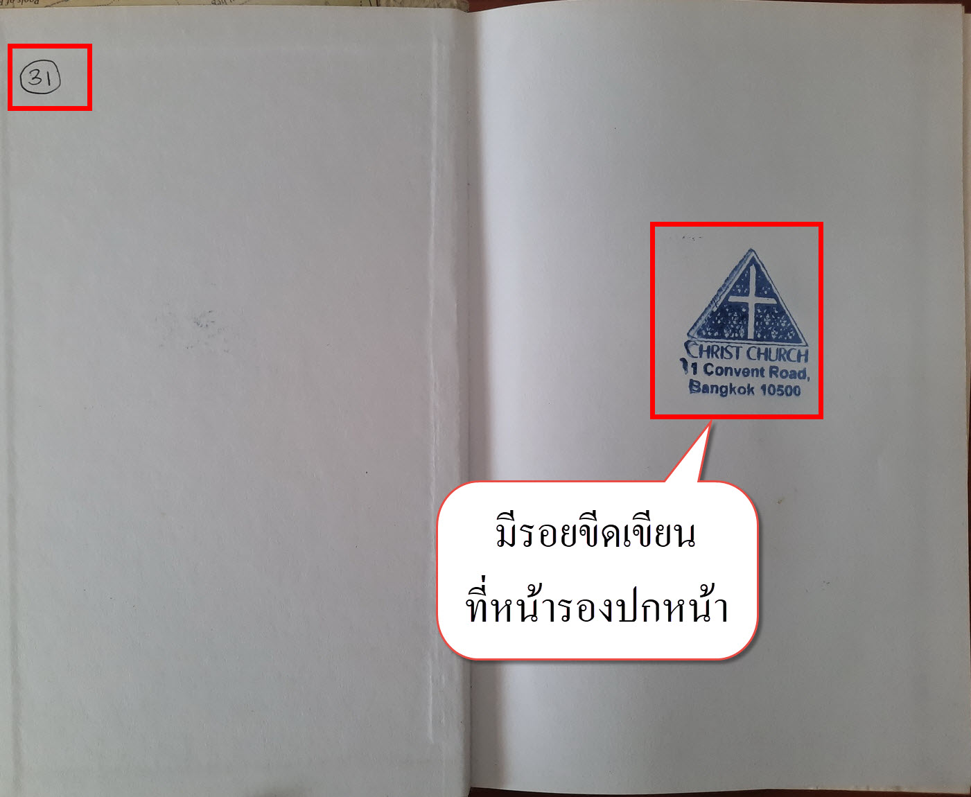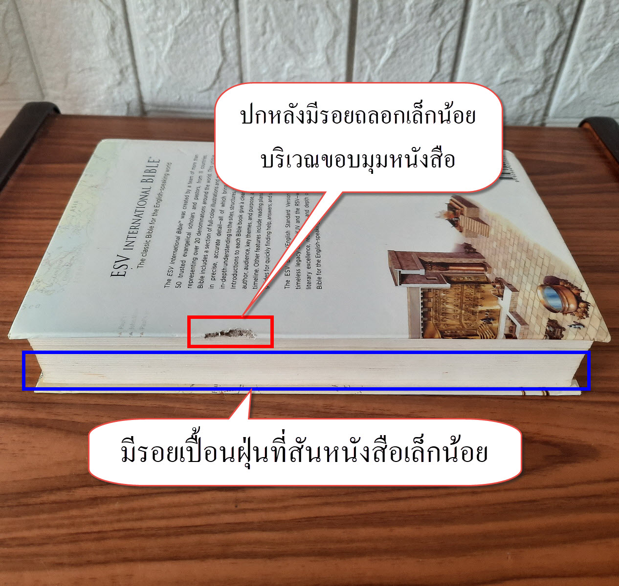 (2) ปกหลังมีรอยถลอกเล็กน้อย บริเวณขอบมุมหนังสือ รายละเอียดตามภาพ