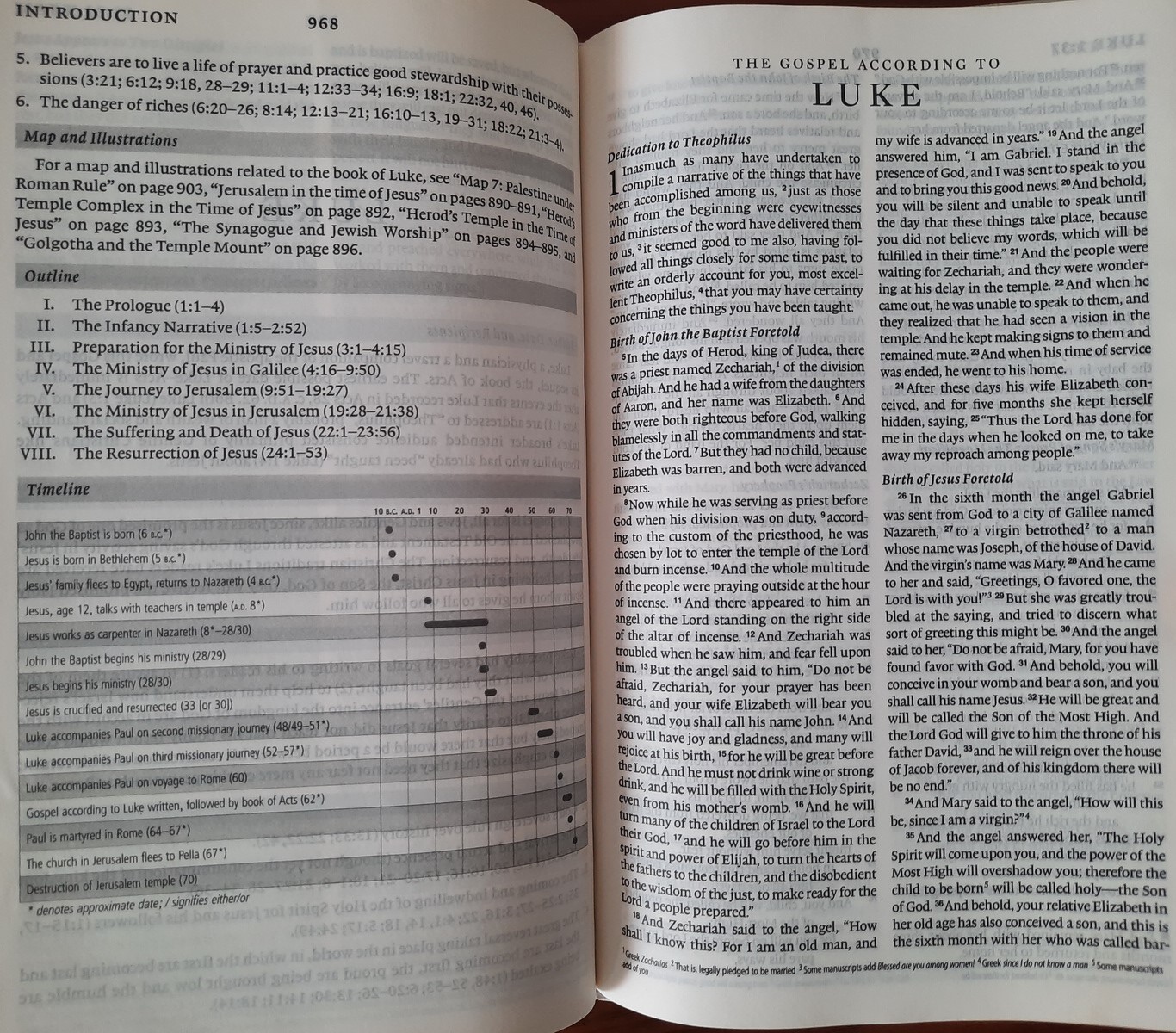 บทนำของหนังสือแต่ละเล่มในพระคัมภีร์จะสรุปภาพรวมเกี่ยวกับผู้เขียน กลุ่มผู้อ่าน ประเด็นสำคัญ และจุดประสงค์ของหนังสือ พร้อมทั้งโครงร่างเนื้อหาและลำดับเวลา นอกจากนี้ยังมีแผนการอ่าน ดัชนีค้นคำอย่างละเอียด รวมถึงคู่มือสำหรับค้นหาความช่วยเหลือ คำตอบ ข้อพระคัมภีร์สำคัญ และหัวข้อต่างๆ ได้อย่างรวดเร็ว